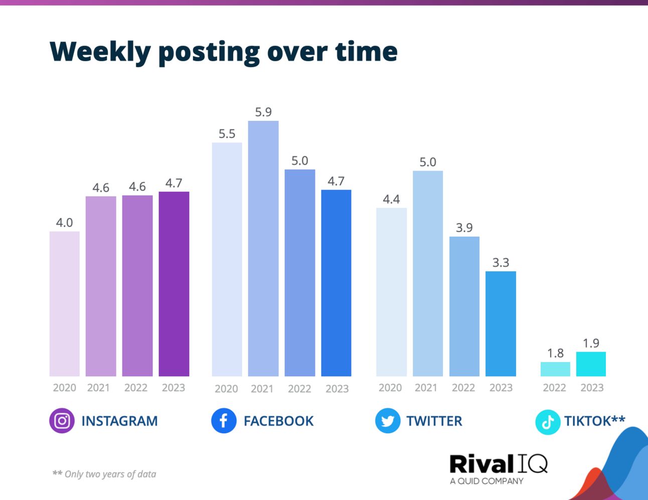 - 7 хоногт хийх постын тооны хувьд Instagram болон TikTok дээр бага зэрэг өссөн бол Facebook болон Twitter дээр буурчээ.