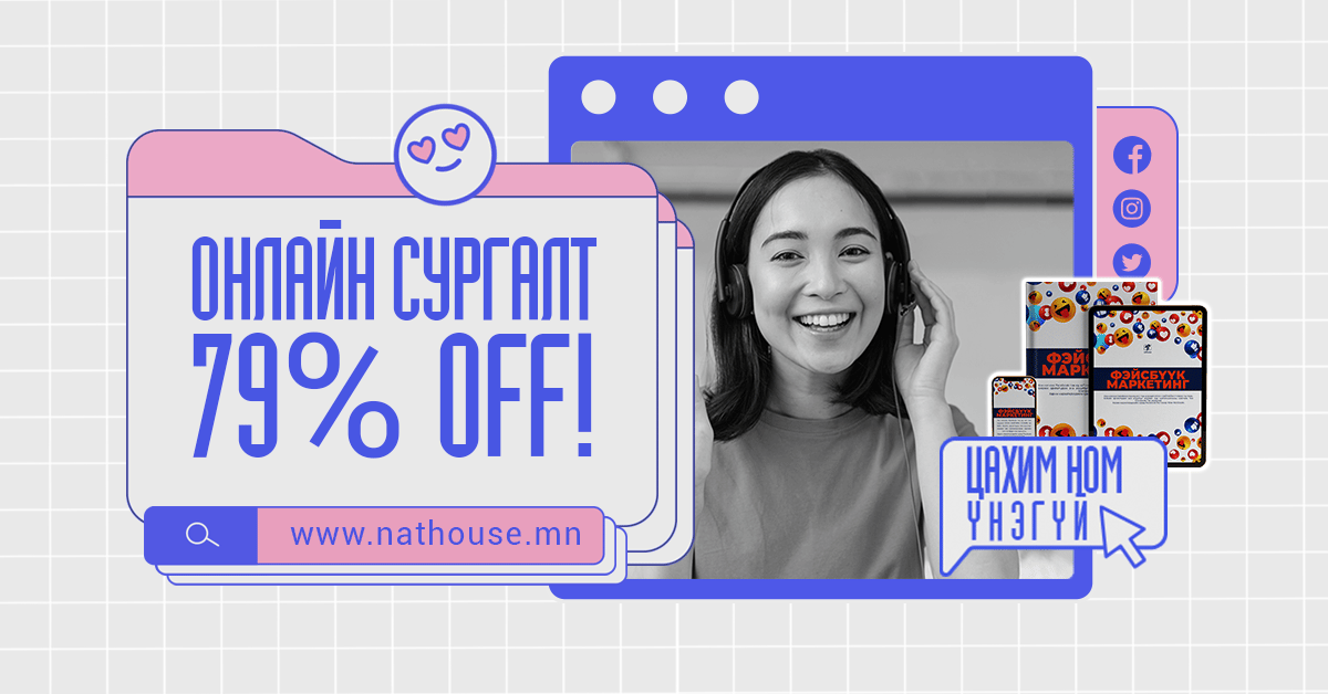 Зөвхөн энэ сард манай байгууллагын зохион байгуулдаг онлайн сургалтанд 79%-н хөнгөлөлттэй үнээр суралцах боломжтой. Мөн манай хамт олны бэлтгэсэн Фэйсбүүк маркетингийн талаар А-Я цахим ном бүх суралцагсдад ҮНЭГҮЙ!