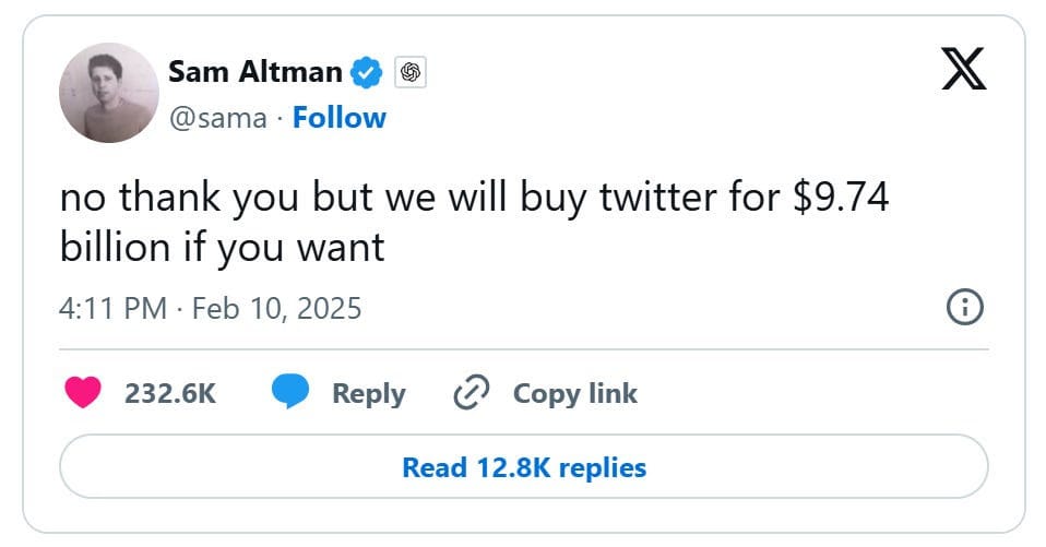 Элон Маск OpenAI-г 97.4 тэрбум доллараар худалдаж авахаар санал болгожээ. Маск OpenAI нээлттэй бас ашгийн бус хэвээр байх ёстой гэж үзэж байна гэнэ.