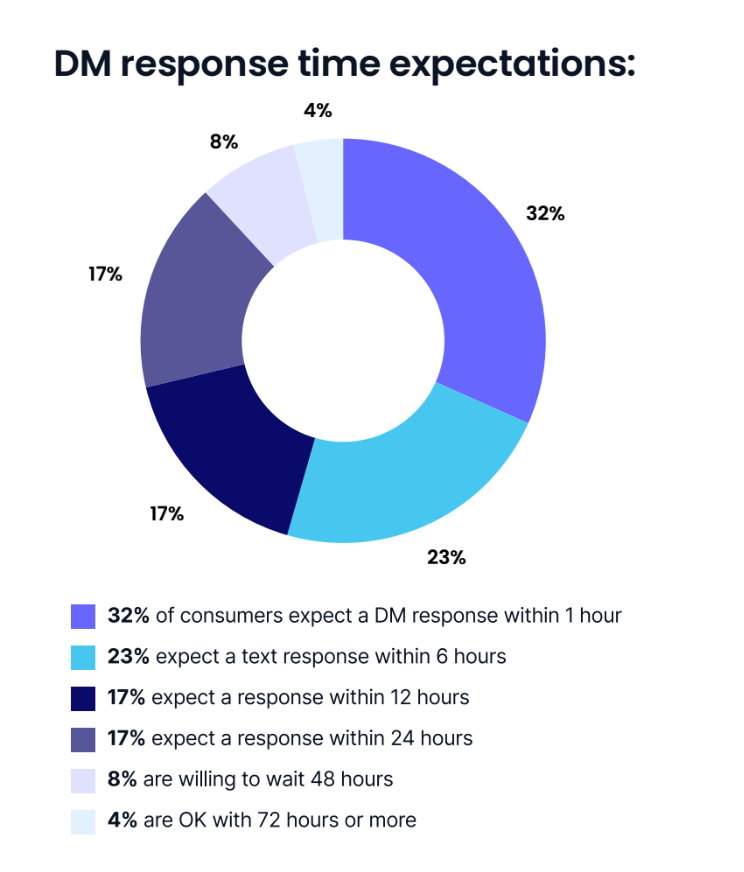 Нийт үйлчлүүлэгчдийн бараг гуравны нэг нь танайхыг 1 цагийн дотор хариу өгөхийг хүлээж байгаа бол дөрөвний нэг нь 6 цагийн дотор хариу өгөхийг хүлээж байдаг гэнэ. Үүнээс гадна 17% нь 12 цагийн дотор танайхаас хариу сонсоно гэсэн хүлээлттэй байдаг юм байна.