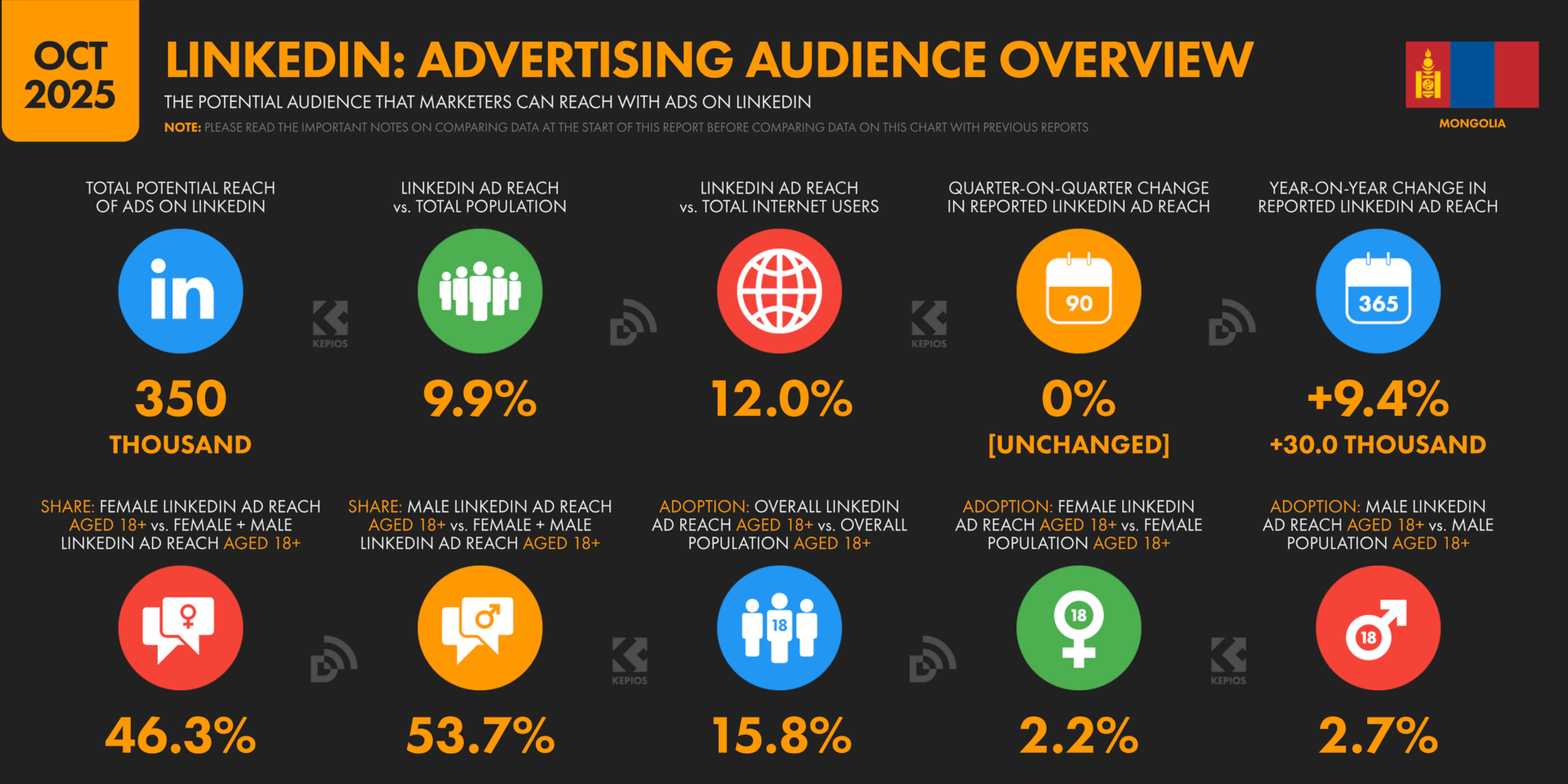 Харин LinkedIn хэрэглэгчдийн тоо Монгол Улсын 18-с дээш насны нийт хүн амын 15.8%-тай тэнцэж байгааг онцлох нь зүйтэй.