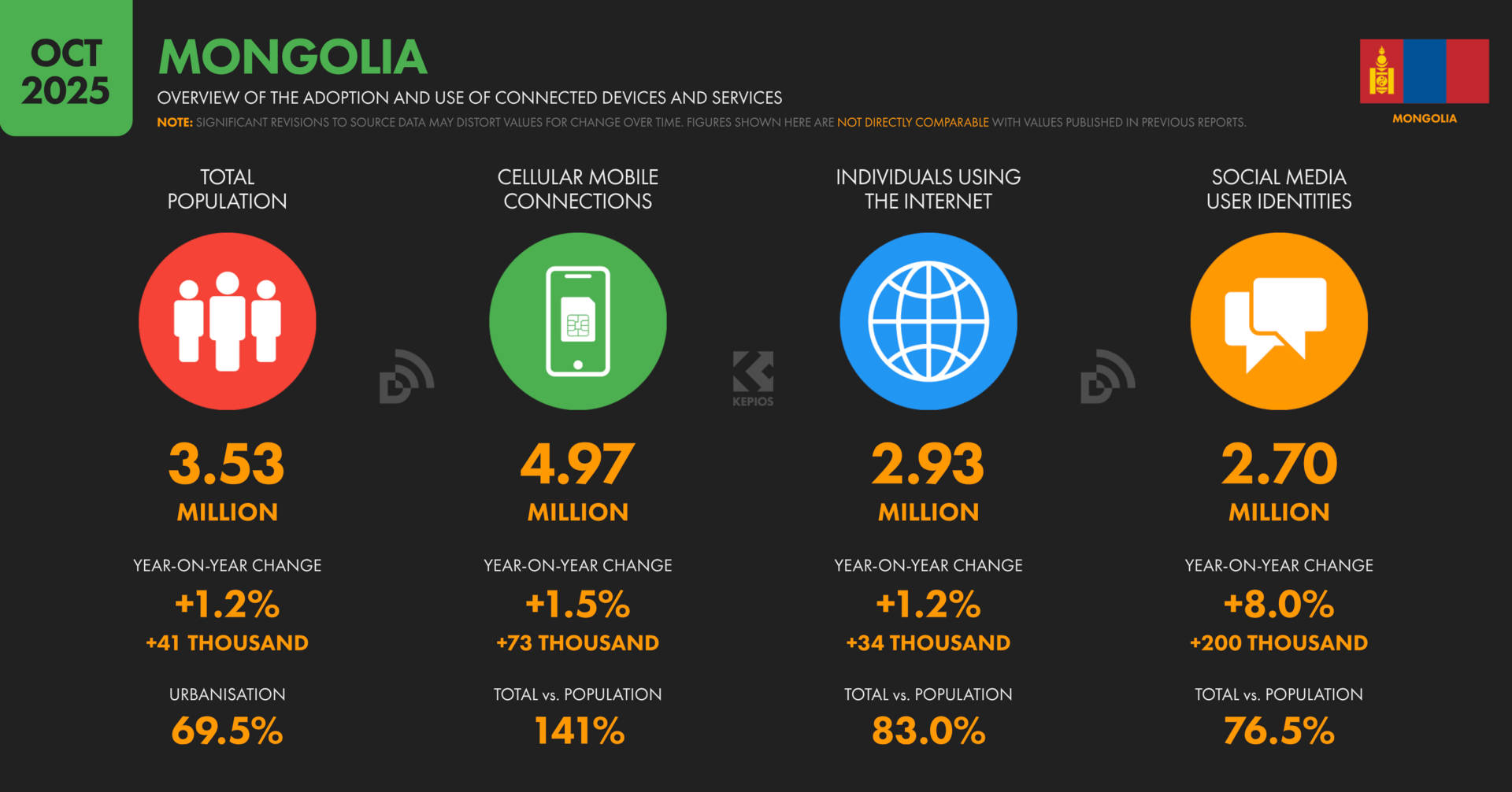 2025 оны 10-р сарын байдлаар Монгол Улс дахь дижитал хэрэглээний ерөнхий үзүүлэлтүүд: